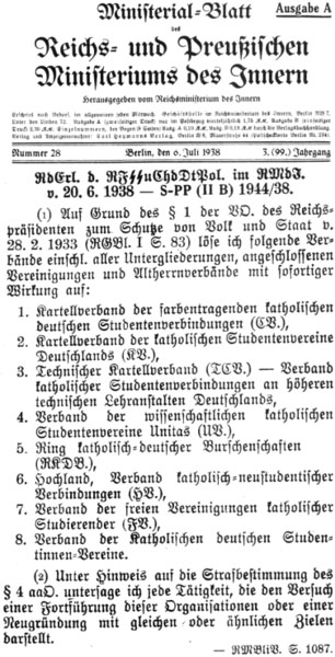Verbot der katholischen Verbände vom 20.06.1938