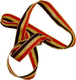 Bierband in den Farben schwarz-gold-rot mit goldener Perkussion