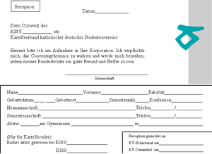 Will ein Student Mitglied des Vereins werden, so stellt er ein Receptionsgesuch. D.h. er bittet den Fuchsmajor direkt darum, Mitglied werden zu dürfen. Dieser übergibt ihm ein Receptionsformular, welches er ausfüllt und unterschreibt. Mit dem Receptionsgesuch verpflichtet er sich: