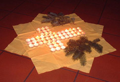 Dekorationen für Andachten sind eher dezent, dennoch kommt in einer schmucklosen, nach abgestandenem Bier und Zigaretten riechenden Kellerkneipe keine andächtige Atmosphäre auf. Ein paar Kerzen und Stoffservierten in Markomannenfarben, bzw. etwas Weihnachts- oder Osterdeko können also nie schaden.