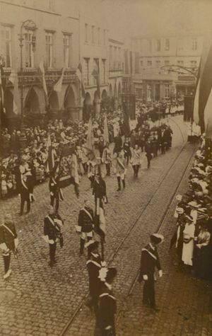 Es gibt nur wenige Prozessionen in Westfalen, die auf eine so lange, ungebrochene Tradition zurückblicken können wie die "Große Prozession" (auch Pest- und Bandprozession genannt) in Münster. Als im Jahr 1382 mehr als 8.000 Einwohner der "Metropolis Westphaliae" der Pest zum Opfer fielen und ein Jahr später bei einem verheerenden Brand hunderte von Häusern in Schutt und Asche sanken, fassten Bürgerschaft und Geistlichkeit den Entschluss, von nun an eine Buß- und Bittprozession zu halten, um Gott auf diesem Sühnegang um Schutz vor Unglück zu bitten.